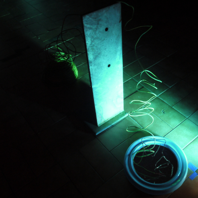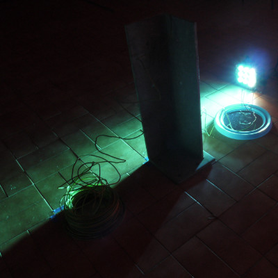 A (small) sculpture - part of the Transformações & Imperfeições project - built with found objects - a long cable & a mirror.
